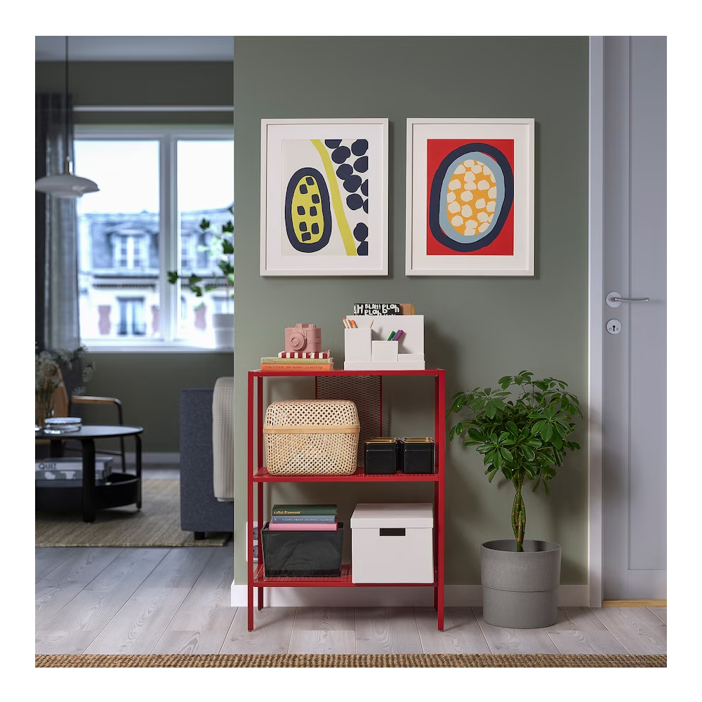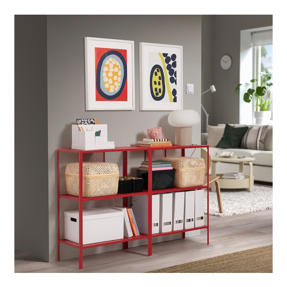 The metal frame and mesh shelves make a nice and practical place for your books, decorations and other things that you like.