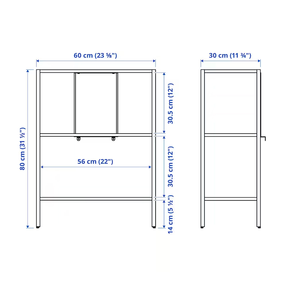 You can fill the shelves with different storage boxes in order to adapt the space to what youwant to store and make the look of the bookcase more personal.